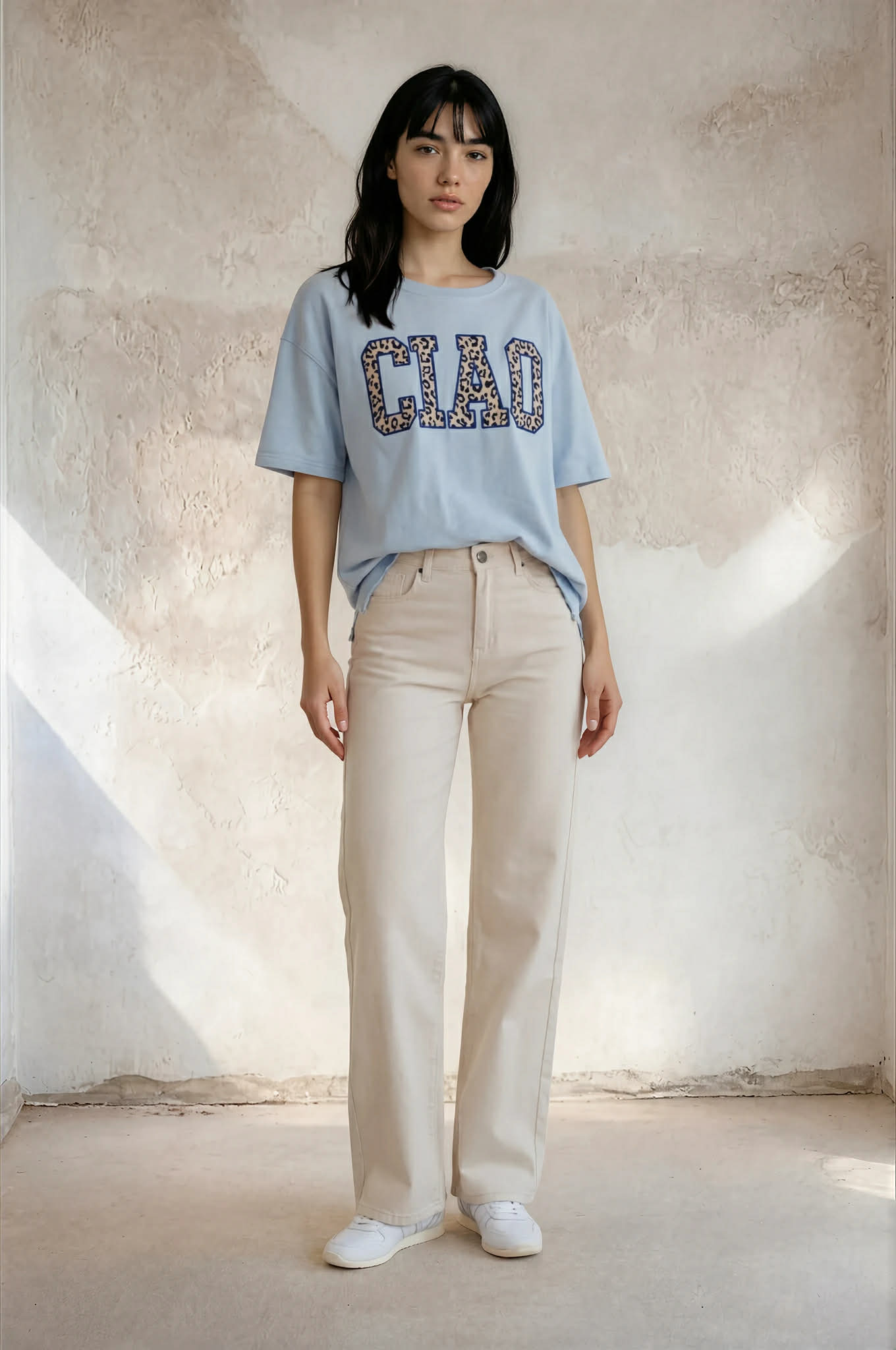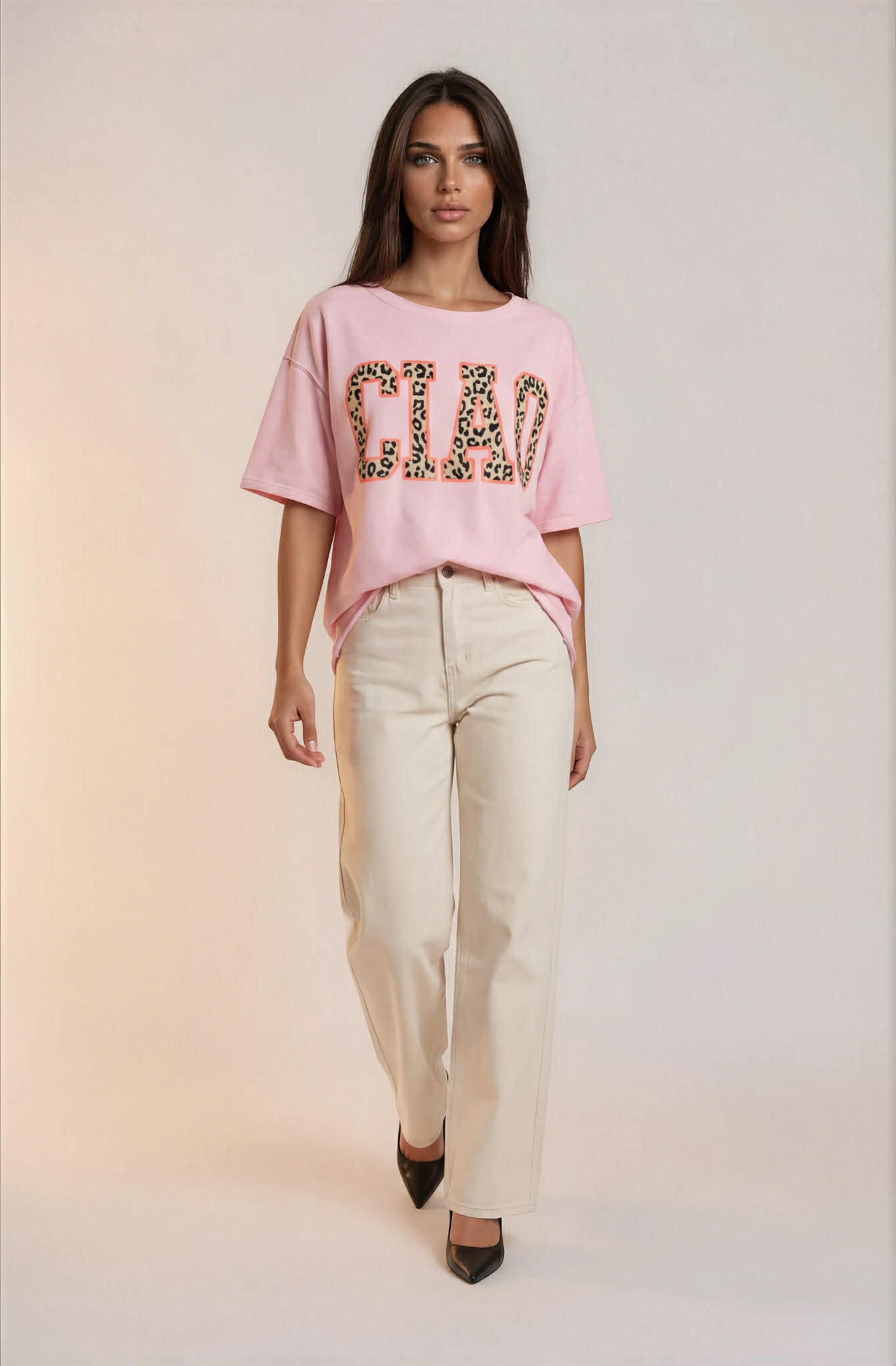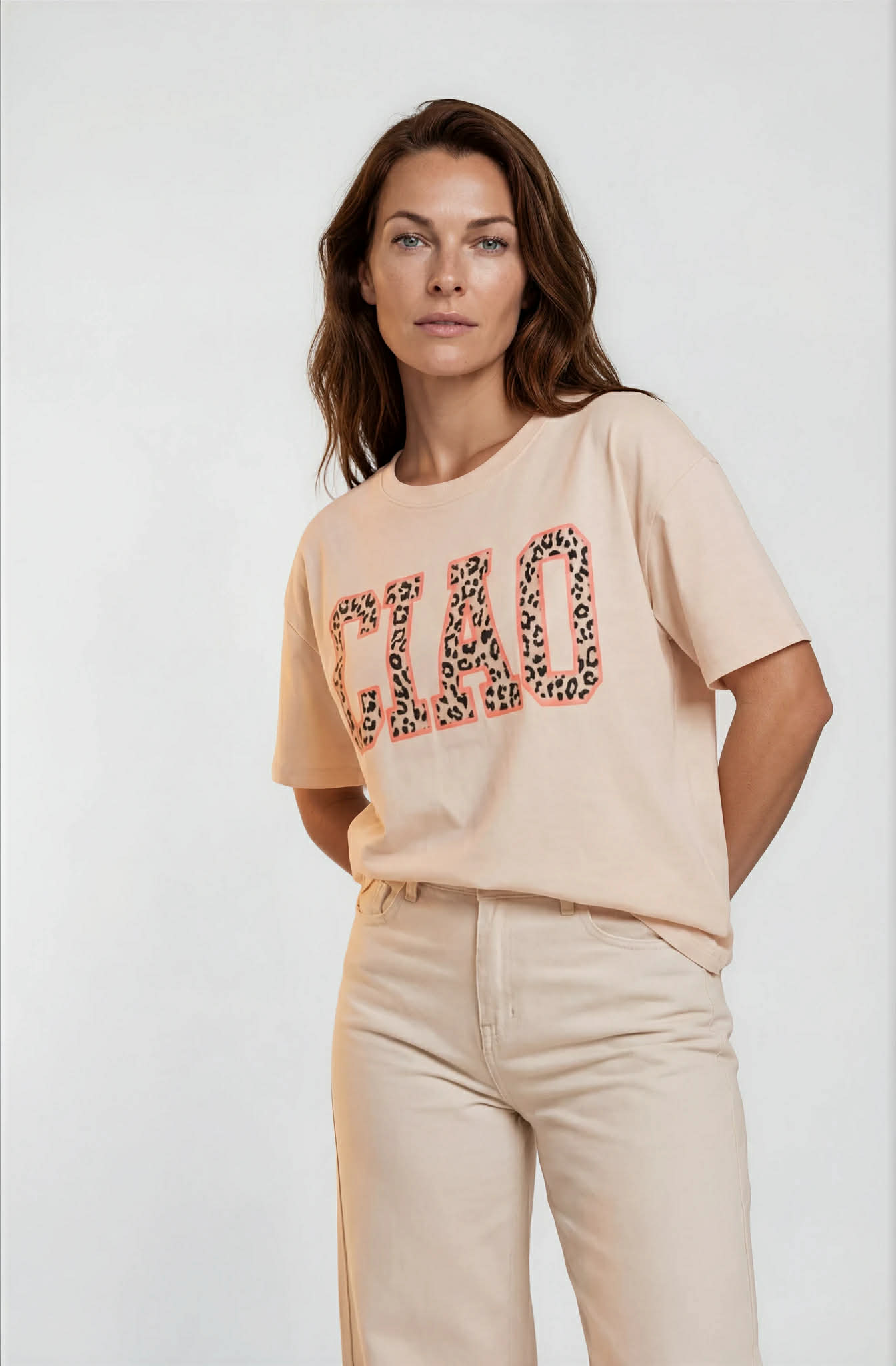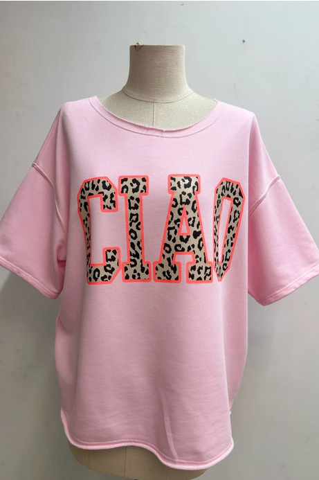 Sweatshirt med kort arm. Text Ciao i leoprint.